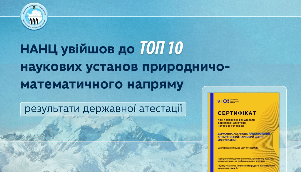 Національний антарктичний науковий центр пройшов державну атестацію за найвищою категорією та став восьмим серед усіх наукових установ України за природничо-математичним напрямом.