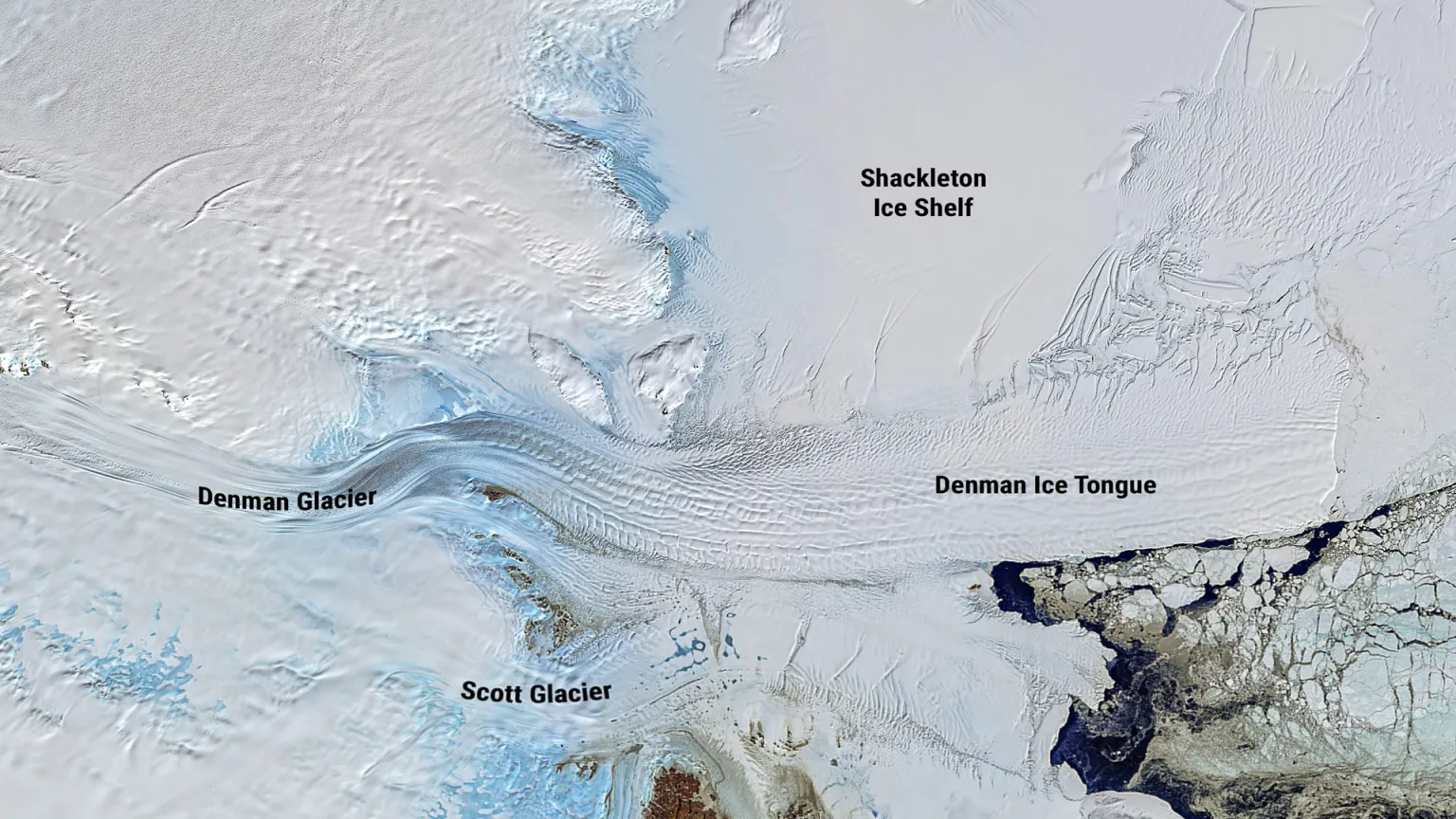 Супутникове зображення льодовикової системи Денман-Шеклтон. Фото: NASA.