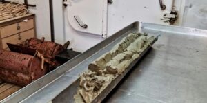 Другий напрям — це продовження вивчення морських донних відкладів. Цього сезону відбувся вже третій добір таких зразків за допомогою гравітаційної трубки з борту українського дослідницького корабля «Ноосфера».
