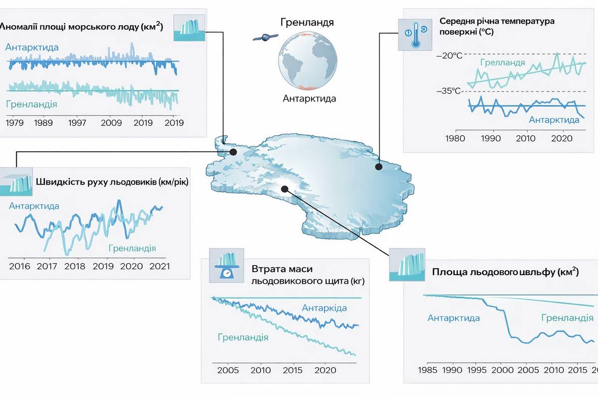 Упродовж десятиліть вчені вважали Антарктиду місцем, де зміни клімату проявляються настільки повільно, що можливість катастрофи залишалася справою далекого майбутнього. Нова стаття в журналі Nature Geoscience перекреслює цю впевненість: науковці під керівництвом Рут Мотрам (Ruth Mottram) з Данського метеорологічного інституту (DMI) попереджують, що Антарктида вже зараз переживає процес, який отримав назву «гренландизація» — прискорене поверхневе танення, зменшення морського льоду і стрімкий відступ льодовиків, що характерне саме для Гренландії. Columbia Climate School детально розбирає це відкриття, підкреслюючи: «майбутнє прийшло набагато швидше, ніж очікувалося». Про це пише видання NewsYou.info.