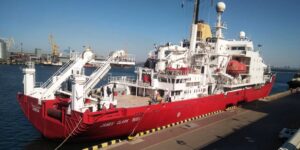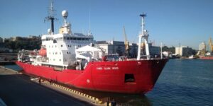 Криголам «James Clark Ross» під синьо-жовтим прапором сьогодні прибув в Одеський морський порт, повідомляє сайт НАНЦ.