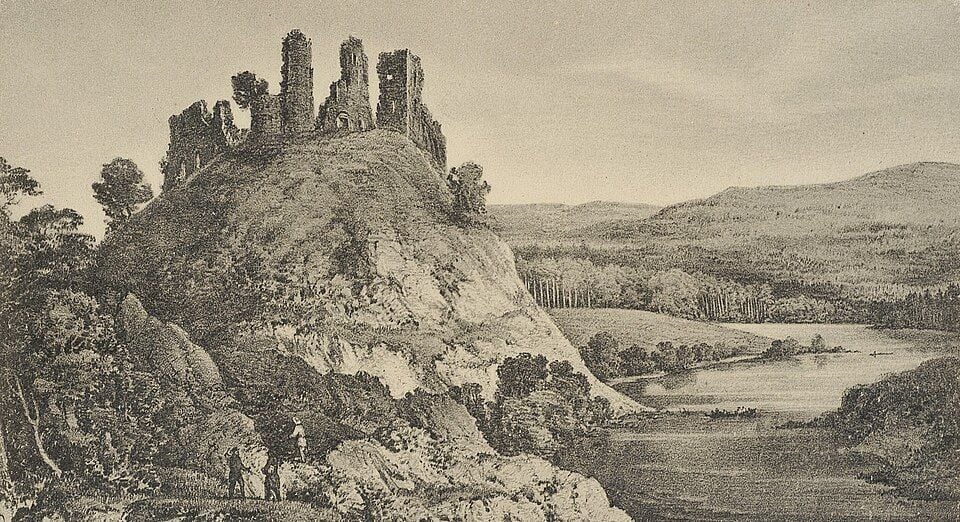 Вже у XIX ст. Губківський замок стояв руїною (літографія Наполеона Орди)