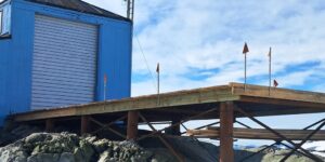 Щоб спросити запуск метеорологічних зондів, інженерний загін побудував на виході з аеропавільону спеціальну платформу. Це майданчик 12 м на 4,6 м, який тримається на 10 металевих опорах і має дерев’яний настил. Бетонування опор і будівництво платформи зайняло приблизно три тижні.
