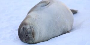 «Станція прокидається, а добровільний помічник метеорологів, морський слон, спить на вахті біля метеомайданчику – молодий фахівець ще не втягнувся в режим чергувань».