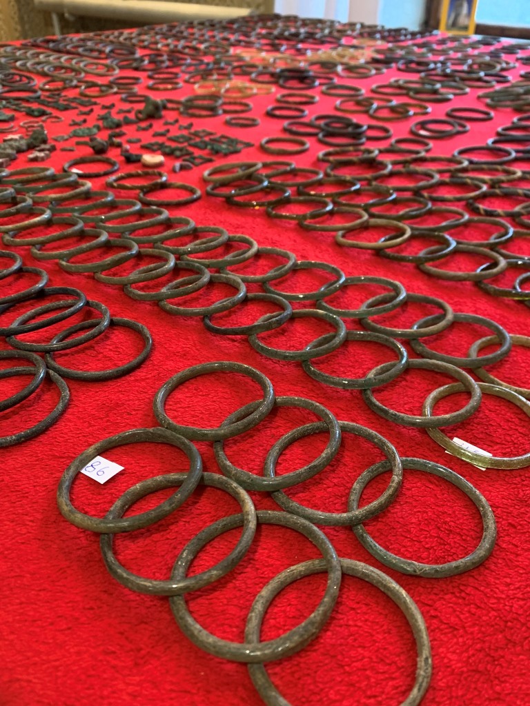 Знахідка цілих скляних браслетів у такій кількості є безпрецедентною для історії археологічних досліджень теренів Києво-Руської держави. Комплекс із Володимира складається із 573 цілих браслетів, розділених на 109 типів, що різняться формою (виті, гладкі, трапецієвидні), кольором (зелені, сині, фіолетові, жовті, золотисті у різних відтінках) та розміром діаметру (від 4,0 до 5,9 см.). Наявні серії із однакових виробів від 5 до 31 екземплярів, окремі екземпляри зустрічаються в одиничних зразках або в кількості від 2 до 5.