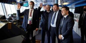 Крім того, президент Зеленський ознайомився з можливостями науково-дослідного судна «Борис Александров», яке використовуватиметься для моніторингу дна Чорного моря та збирання екологічних даних. Судно, яке раніше мало назву «Бельгіка», Україна отримала в подарунок від Бельгії.