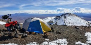 Руслан Верін пише, що перед підйомом на 6020 метрів переночував у наметі на висоті 6 тисяч метрів, коли зовні намету було -20°C і сильний вітер. «Хотів так само як і вчора, кількома частинами занести багаж і велосипед на пік. Але за звичкою склав намет, речі по сумках, а сумки на велосипед, і так почав штовхати велосипед вгору», — описує підйом мандрівник.