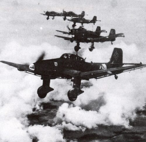 В той час німці повним ходом готували полякам жахливий сюрприз. Він не забарився. Приблизно о 18.05 після прольоту літака-розвідника відбувся масований наліт німецької авіації: пікірувальників Ю-87 та двох дивізіонів Хе-111 з термітними бомбами. Загалом на Вестерплатте з 60 літаків протягом 40 хв. було скинуто 8,5 т. бомб.