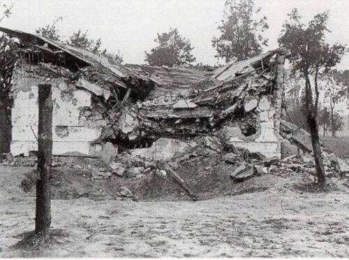 «Вартівня 5, в яку потрапила бомба стояла в руїнах та палала. Тяжкий бетонний дах привалив своєю масою, солдатів, що там знаходилися, вибухнули запаси боєприпасів. То була могила цілого підрозділу разом з його командиром Адольфом Петцелтем, які до останнього стояли на посту… Досягаємо місця. Яка пригнічуючи картина! По цілій вартівні лежать розірвані, спечені шматки людського тіла. Стогін, який нас сюди привів – обірвався. Тому солдатові допомога вже не потрібна. Лежить під стелею на нахиленій стіні, яка ще стоїть, придавлений заваленим перекриттям. Детонація обрушила його з несамовитою силою, тож солдат придавлений багатотонною конструкцією помер».