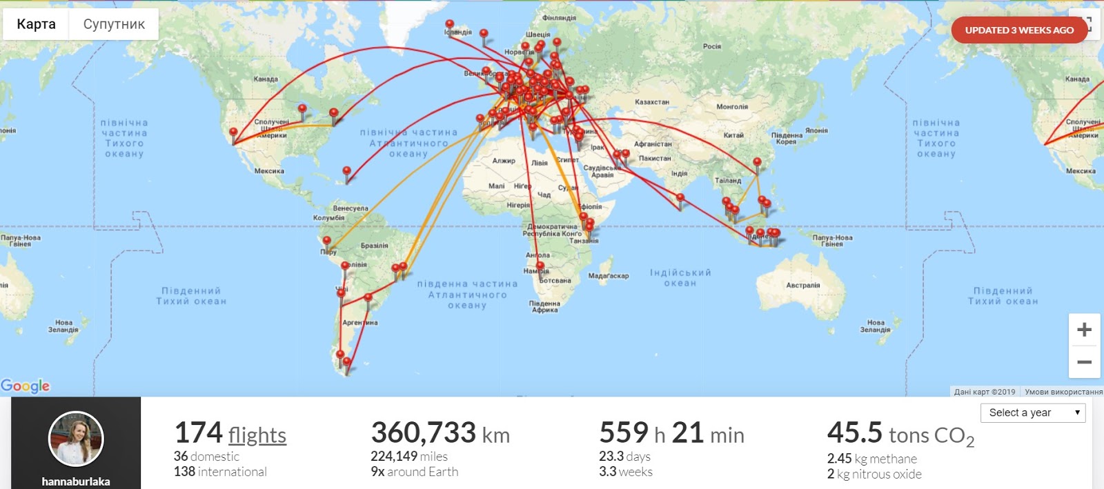 | Мапа моїх перельотів (актуально на дату публікації статті) |