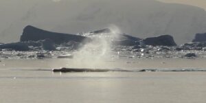 У перший же день роботи команді човна надзвичайно пощастило – вони помітили групу з 5 південних плавунів. Зустріч тривала кілька секунд, але біологи встигли зробити фото китів та передали інформацію про напрямок їхнього руху на “Ноосферу”. Завдяки цьому з судна вдалося записати звуки плавунів.