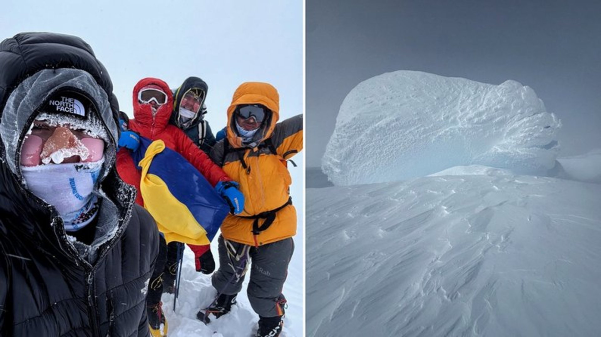 “Так майже ніхто не робить, але ми бачили, що погодні умови були сприятливими. Частину шляху ми подолали нормально, але ближче до самої вершини посилився сніг, інтенсивнішим був вітер, видимість на нулі. Телефони і камери вимикались, павербанки не працювали. Але ми могли використовувати супутникові телефони і рації”, — розповідає Михайло.